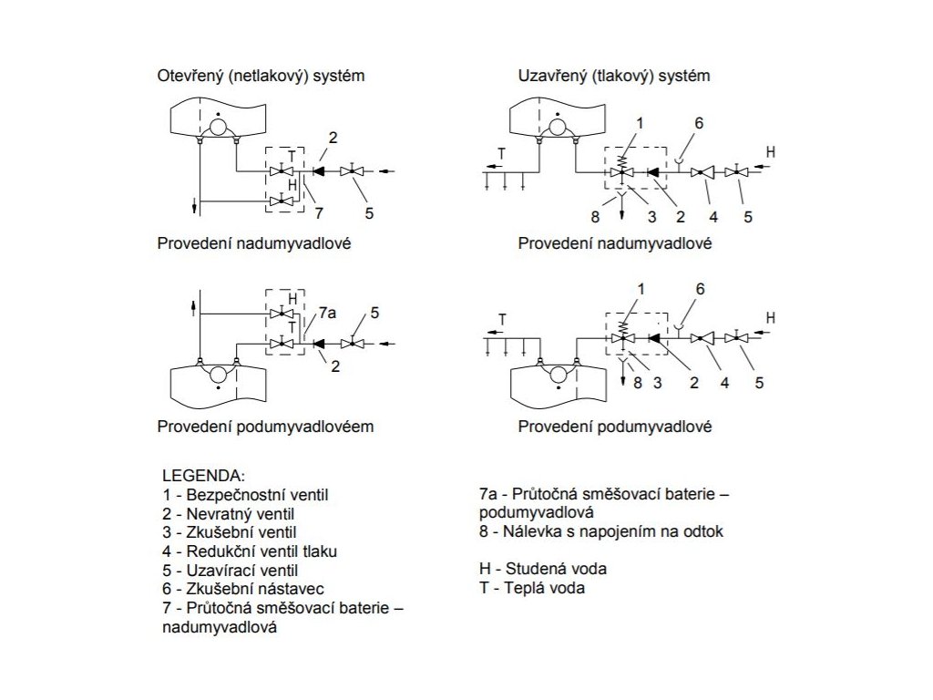 • k ohřívači vody je nutné použít beztlakovou baterii
