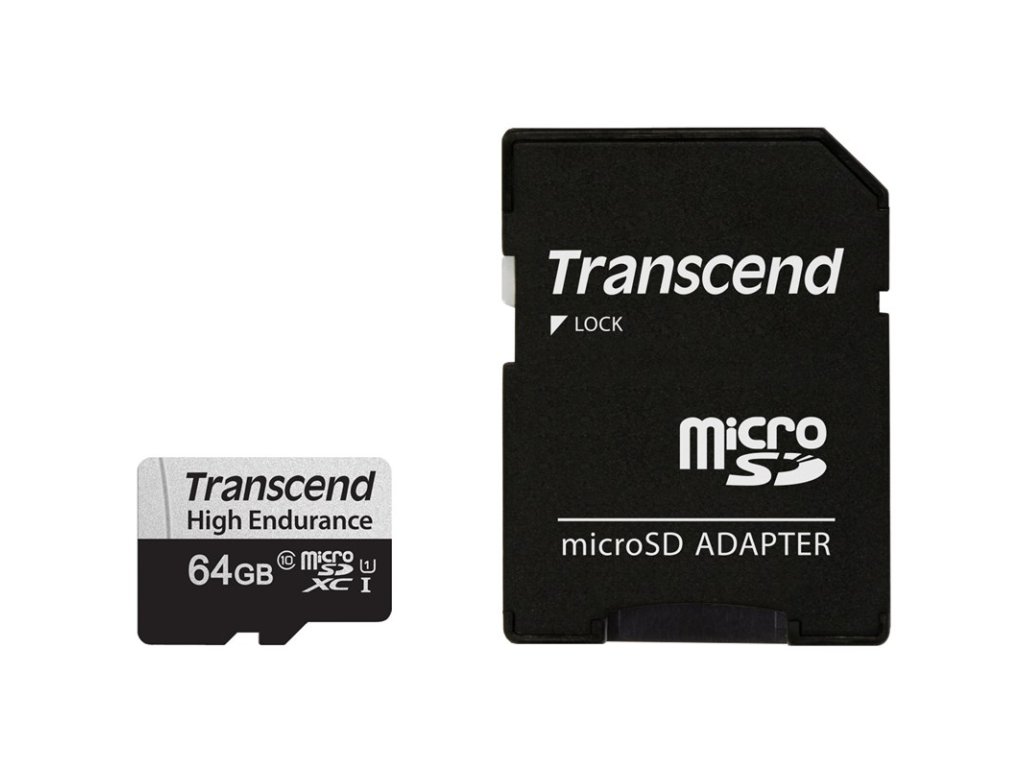 Paměťová karta Transcend MicroSDXC High Endurance 64GB UHS-I U1 (95R/45W) + adaptér