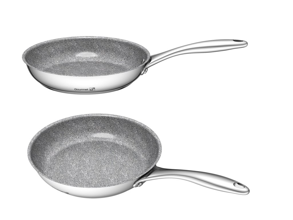 Celonerezová pánev G21 Gourmet Miracle s nepřilnavým povrchem GREBLON® C3+ zaujme na první pohled unikátní vnitřní vrstvou. Speciální potravinářská ocel 18/10 CrNi s vrstvou GREBLON® C3+ je dokonalým materiálem díky svým jedinečným vlastnostem.