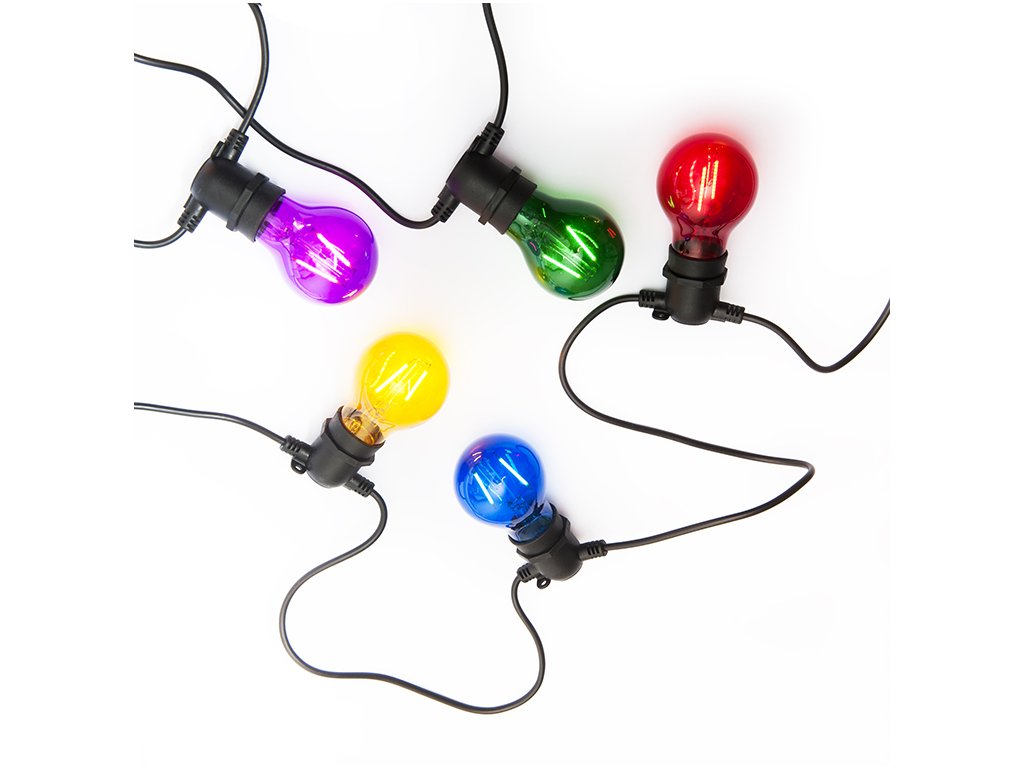 PÁRTY řetěz pro venkovní použití s možností spojení 2 řetězů dohromady s jedním přívodním kabelemOsvětlení pro jakoukoliv příležitost, ve variantě barevné s žárovkami LED FILAMENT pro váš slavnostní okamžik, ať už v letní nebo v zimní sezóně.