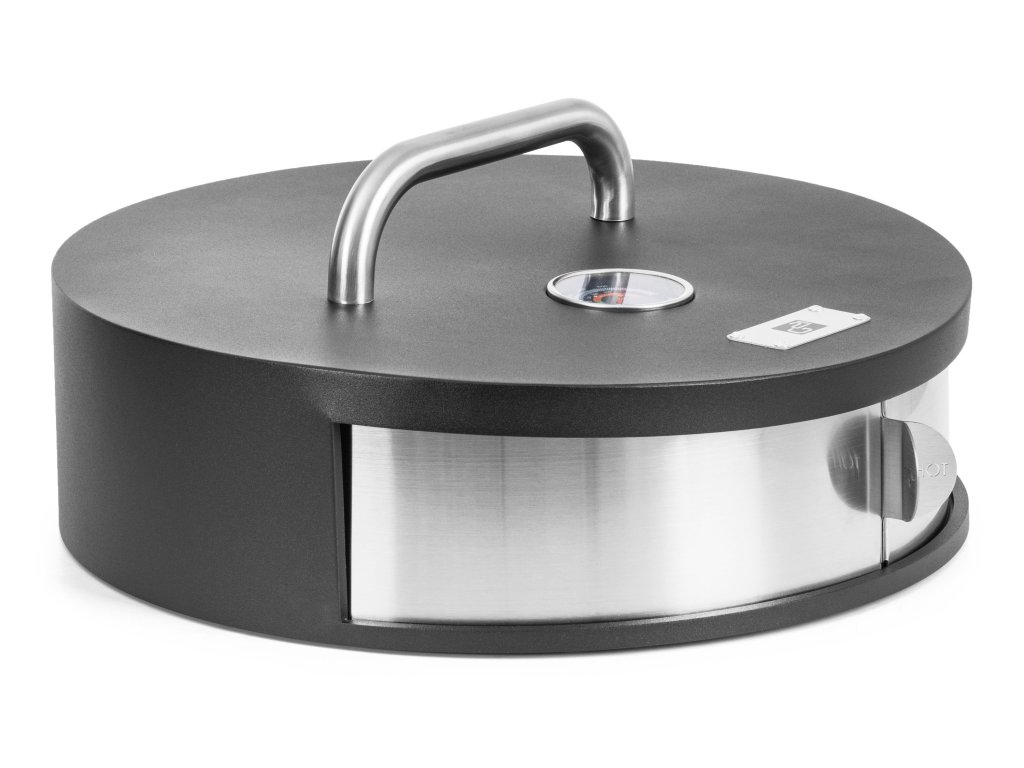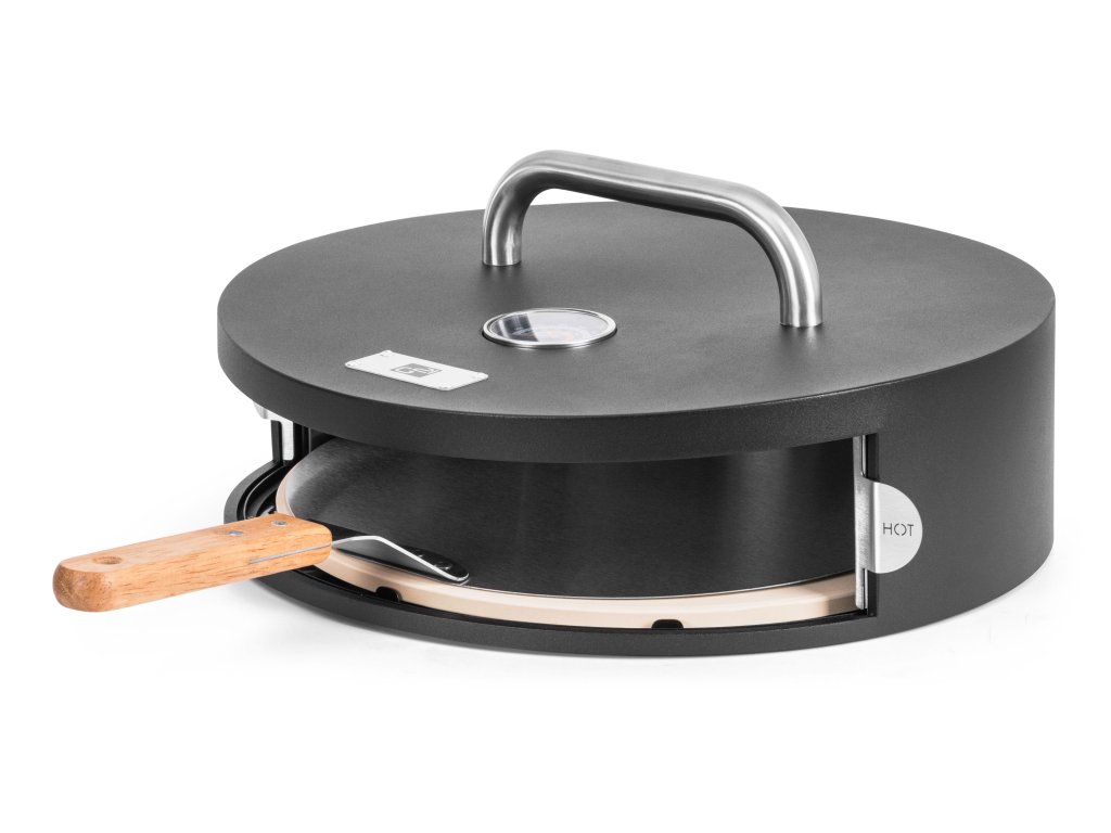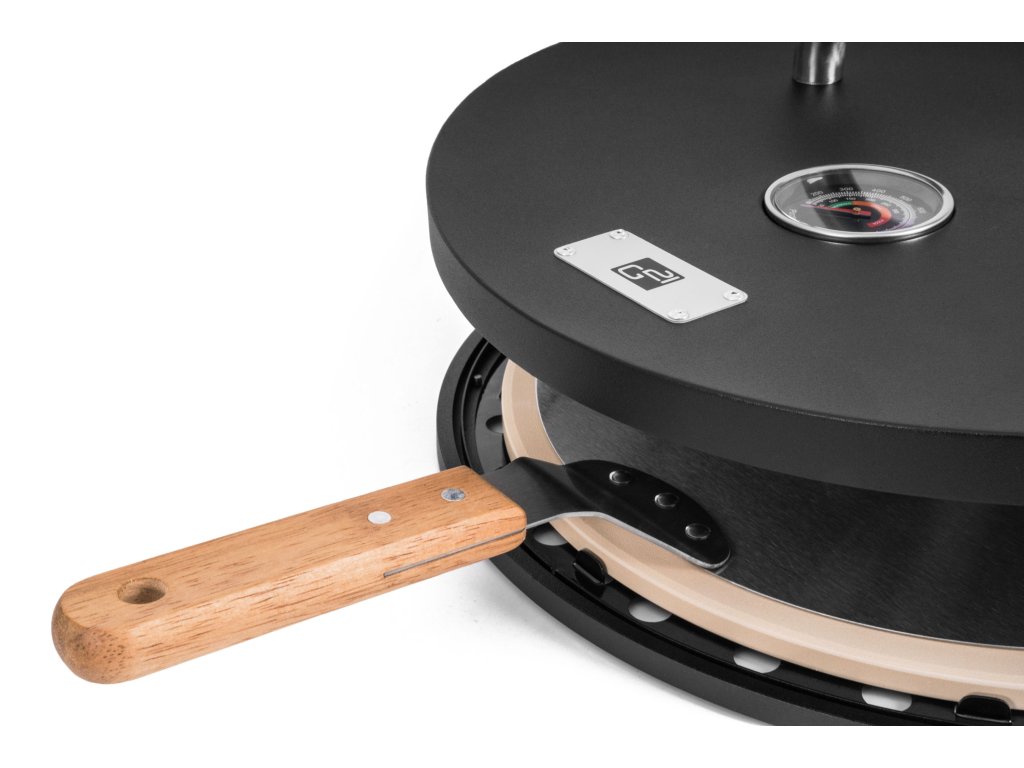 Tělo pece je vyrobené z odolného plechu, zatímco vnitřní vložka z nerezové oceli. Ta pomáhá udržet vysokou teplotu uvnitř pece. Posuvná dvířka nepropustí žádné teplo, v peci se tak vytvoří správná cirkulace vzduchu, která je klíčem k dokonale upečené pizze. Díky teploměru ve víku máte navíc vždy přehled, zda je pec dostatečně nahřátá.