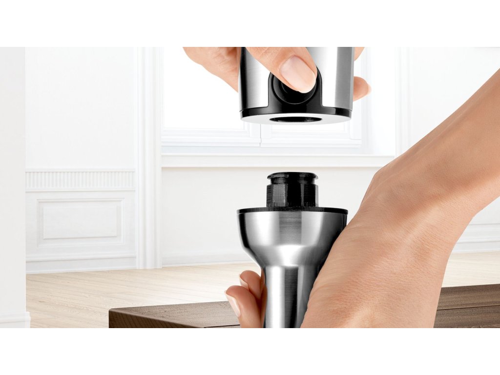 * Bosch patentovaný „Click-mechanismus“: pomáhá připojit i sejmout mixovací nohu a příslušenství bez námahy