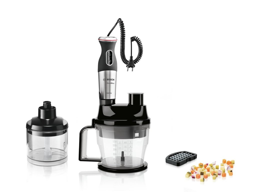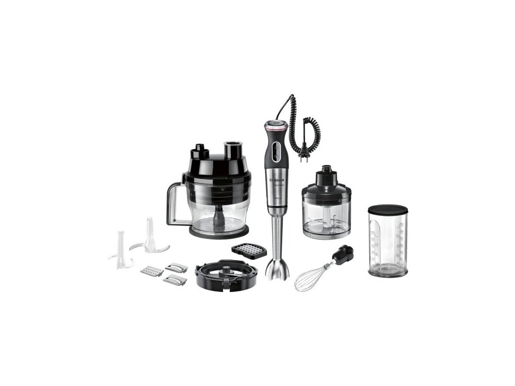 * Bosch "QuattroBlade Pro" s technologií zabraňující přisátí tyčového mixéru ke dnu nádoby: ničím nerušené mixování bez vyšplíchnutí ingrediencí díky čtyřkřídlé čepeli a redukci přisátí.