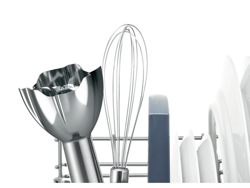 * Snadné čištění: Mixovací noha a celé příslušenství (kromě pohonu sekáčku, kostičkovače a metličky) jsou vhodné pro mytí v myčce