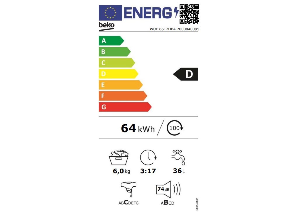 - Spotřeba energie: 64 kWh / 100 cyklů