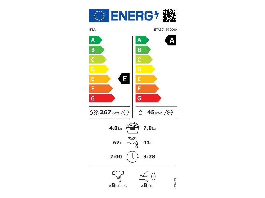 Vážená spotřeba energie praní a sušení pro 100 cyklů (kWh): 267