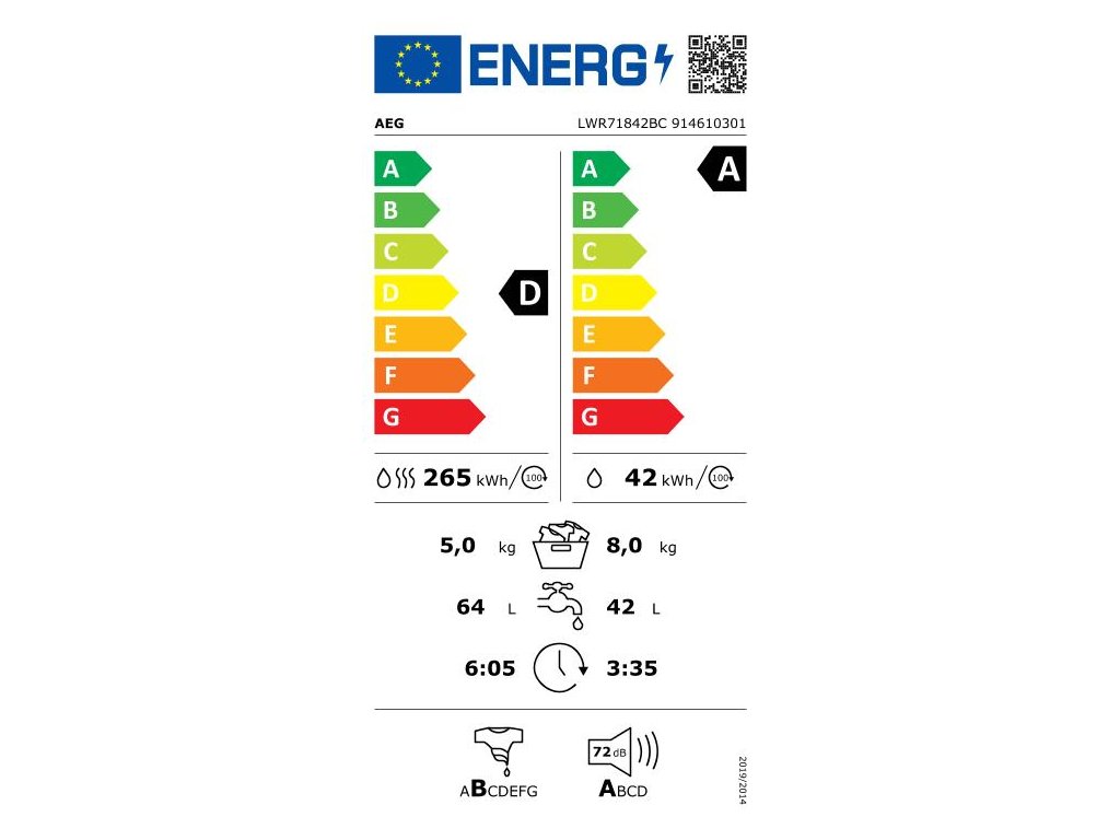 Vážená spotřeba energie praní a sušení pro 100 cyklů (kWh): 265