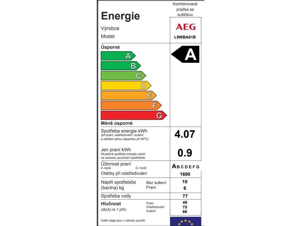 Spotřeba energie při praní a sušení (kWh): 4.07