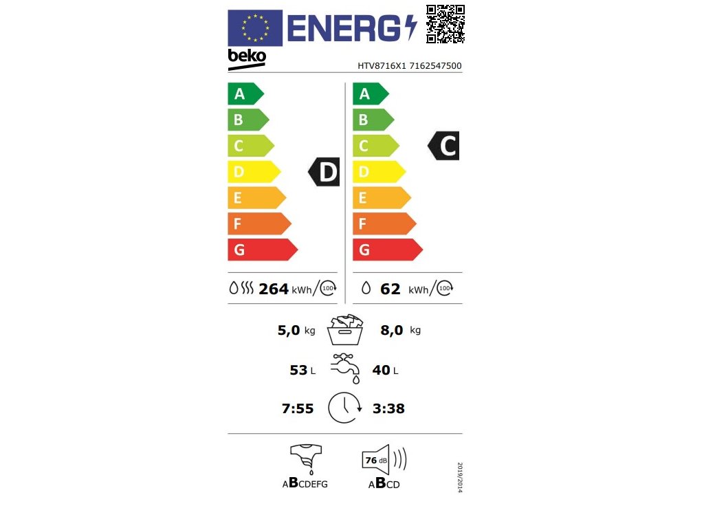 Vážená spotřeba energie praní a sušení pro 100 cyklů (kWh): 264