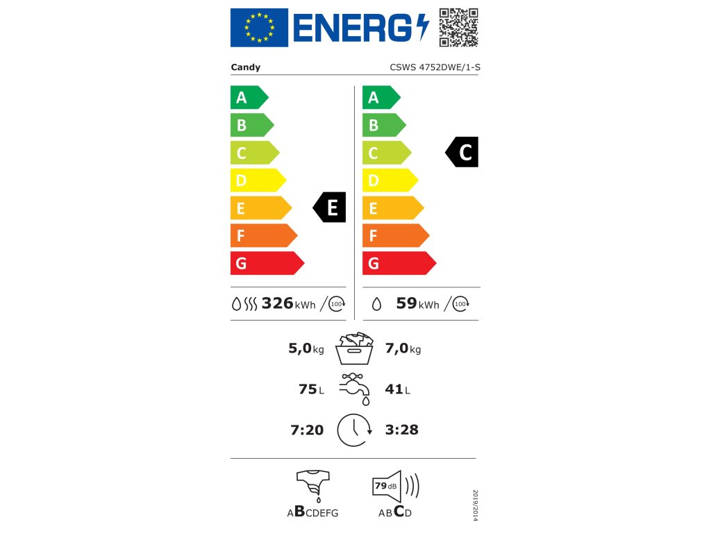 - Třída energetické účinnosti sušení / praní: E/C