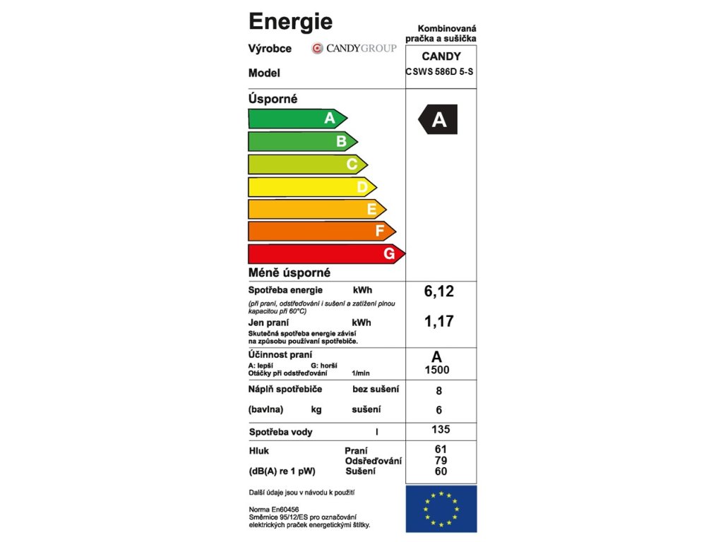 • Spotř. en. na cyklus – praní + sušení (plná náplň) (kWh) 6,12