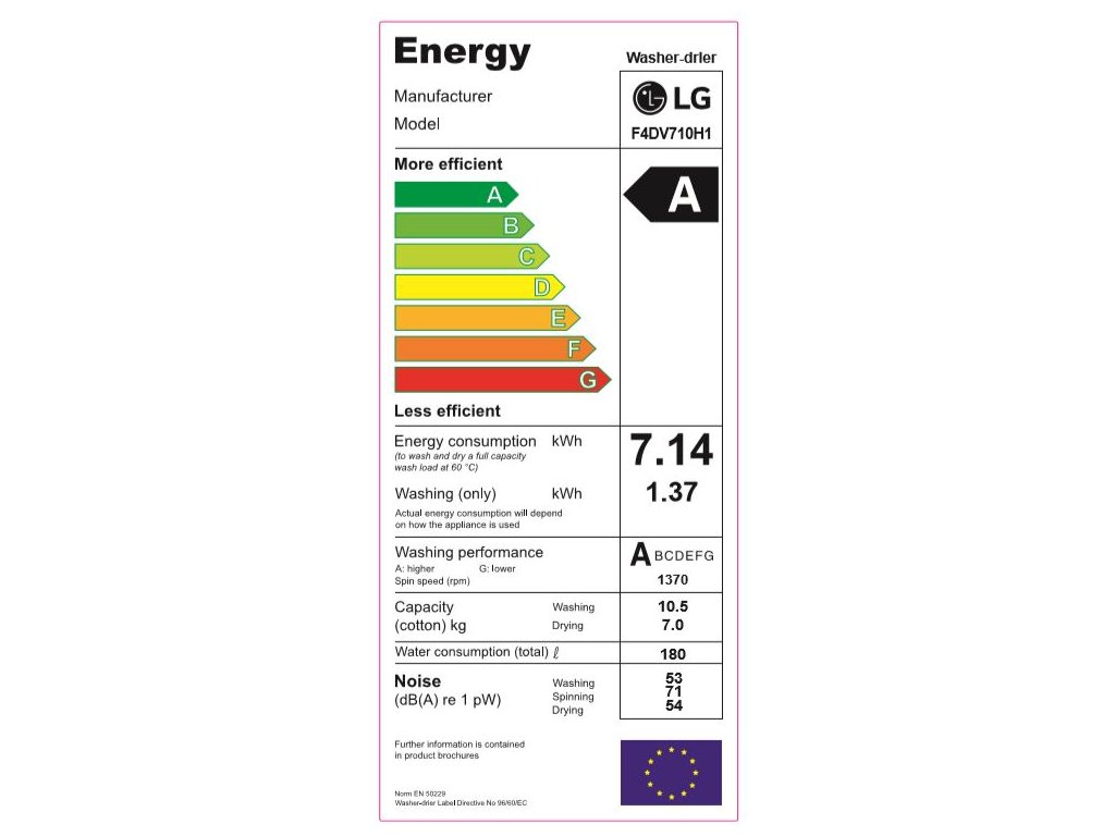 Spotřeba energie při praní a sušení (kWh): 7.14