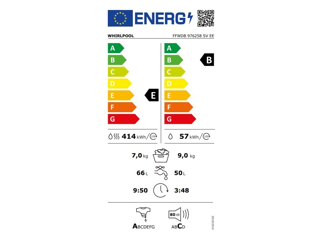 - Spotřeba vody pro celý cyklus praní a sušení v litrech na cyklus (EU2017/1369): 66