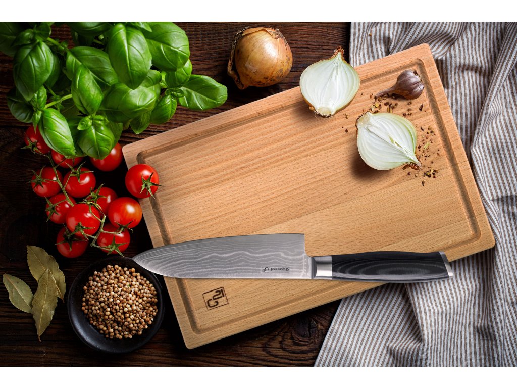 Servírovací a krájecí prkénko G21 má po obvodu praktickou drážku, která zabraňuje stékání šťávy z podávaných jídel nebo krájených surovin. Klín při jídle ani kuchyňskou linku při přípravě si tak nezašpiníte.