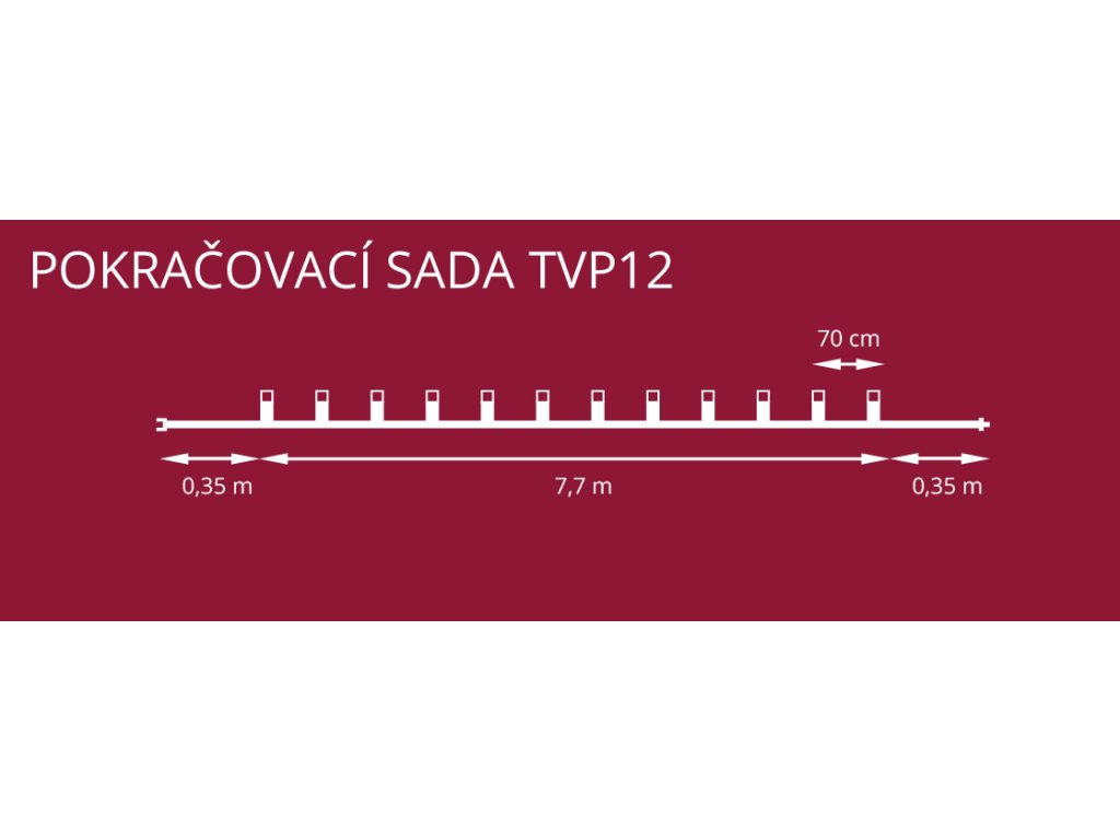 K základní soupravě TVAROVKA "Sada START" je možné připojit MAXIMÁLNĚ 3 prodlužovací soupravy Tvarovka TVP-12 . Maximální délka svítící části řetězu je potom 30,8 m.