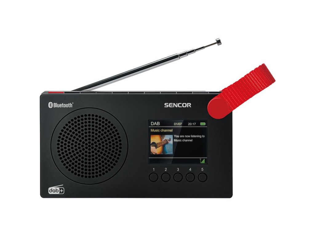 Radiopřijímač s DAB+/FM tuner, RDS, Bluetooth, USB, slot microSD/microSDHC, 2,4" LCD dislpej, hodiny, budík, sluchátkový výstup, časovač vypnutí, výdrž baterie 11 hod.
