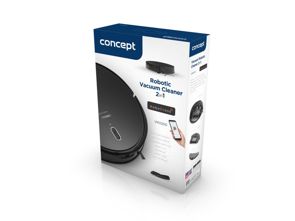Hlavní předností robotického vysavače s mopem 2v1 Laser Concept VR3300 RoboCross je jeho extra nízký profil. Oproti běžným laserovým modelům má tento model laserovou hlavu umístěnou uvnitř těla, kde je chráněna před poškozením a vnějšími nečistotami. Díky tomuto konstrukčnímu řešení dosahuje výšky pouhých 7,6 cm, takže pohodlně odstraní prach a nečistoty i pod nízkým nábytkem.