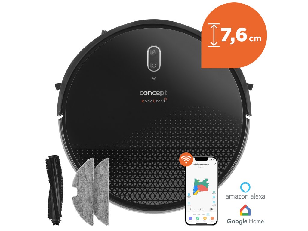 3D robotický vysavač Concept VR3300 podporuje ovládání prostřednictvím hlasového asistenta Amazon Alexa nebo Google Home. Můžete ho tedy zapojit do své chytré domácnosti a ovládat hlasovými povely.