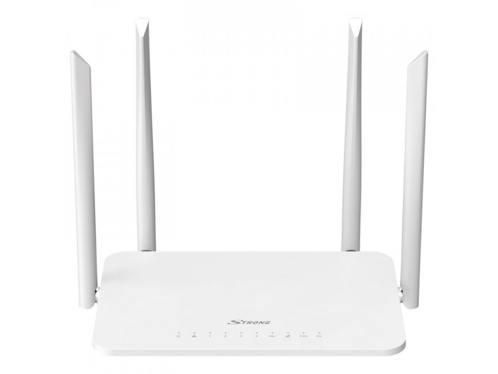 Dvoupásmový gigabitový router STRONG 1200S založený na standardu Wi-Fi 5. Není třeba měnit váš stávající modem. Vylepšete svou domácí síť během několika minut a ihned zvyšte rychlost své sítě Wi-Fi až na 1200 Mb/s. 4 nastavitelné externí antény v kombinaci s pokročilými funkcemi standardu 802.11ac zajišťují širší, spolehlivější a bezpečnější pokrytí Wi-Fi signálem v celé domácnosti. Zásluhou 4 portů Gigabit Ethernet lze rychle a pohodlně připojit veškerá vaše kabelová zařízení. Využívejte maximální výkon vašich chytrých telefonů, tabletů, počítačů, zařízení NAS, chytrých televizorů a herních konzolí zásluhou dvoupásmového gigabitového routeru 1200 Mb/s, který vám umožní bez problémů streamovat UHD videa nebo hrát online hry v celé domácnosti.