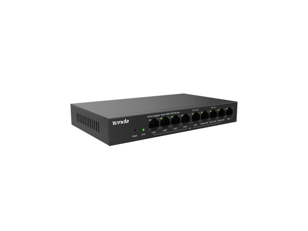 Tenda G0-8G-PoE Gigabit PoE Router je univerzální router včetně PoE switche. MultiWAN, 9x Gigabit RJ45 (3x WAN/LAN, 1x WAN, 5x LAN), 8x LAN PoE+ 802.3 af/at, celkem 95W. Podporuje management až 128x WiFi AP Tenda i21, i24, i25, i27, i29, a dalších. Fast Roaming IEEE 802.11k/v/r, VPN IPSec, PPTP, L2TP, Smart Bandwidth control, DHCP server.