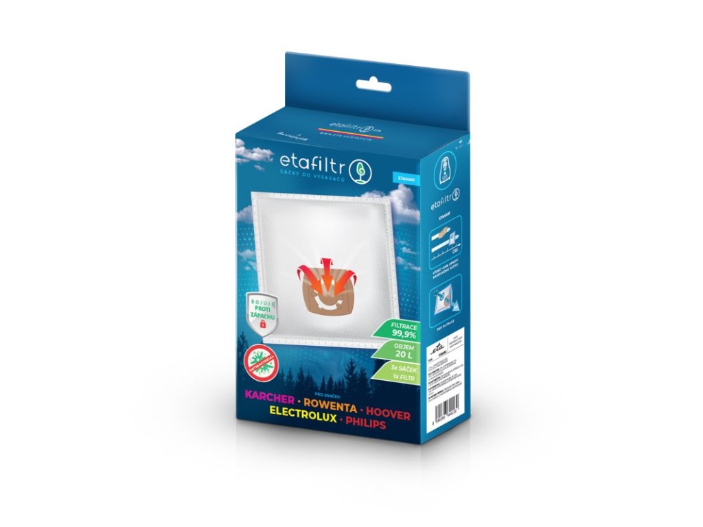 V balení najdete 4 ks sáčku do vysavače a 1 ks filtru. Se sáčky etafiltr získáte nejen výkonnější a hygieničtější úklid, ale také čistší a zdravější domov.