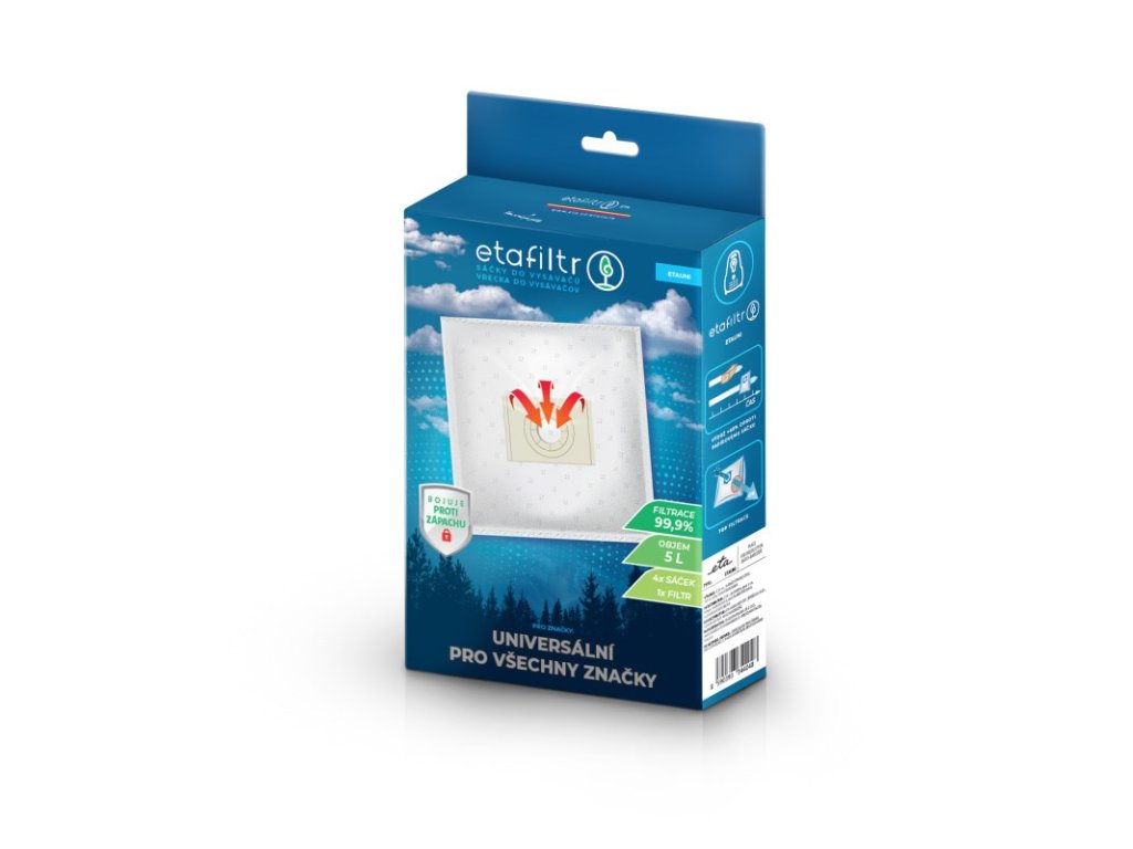 V balení najdete 4 ks sáčku do vysavače a 1 ks filtru. Se sáčky etafiltr získáte nejen výkonnější a hygieničtější úklid, ale také čistší a zdravější domov.