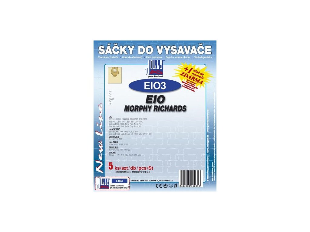 Sáčky do vysavače Jolly EIO 3 (5+1+1ks) do vysav. EIO, MORPHY RICHARDS