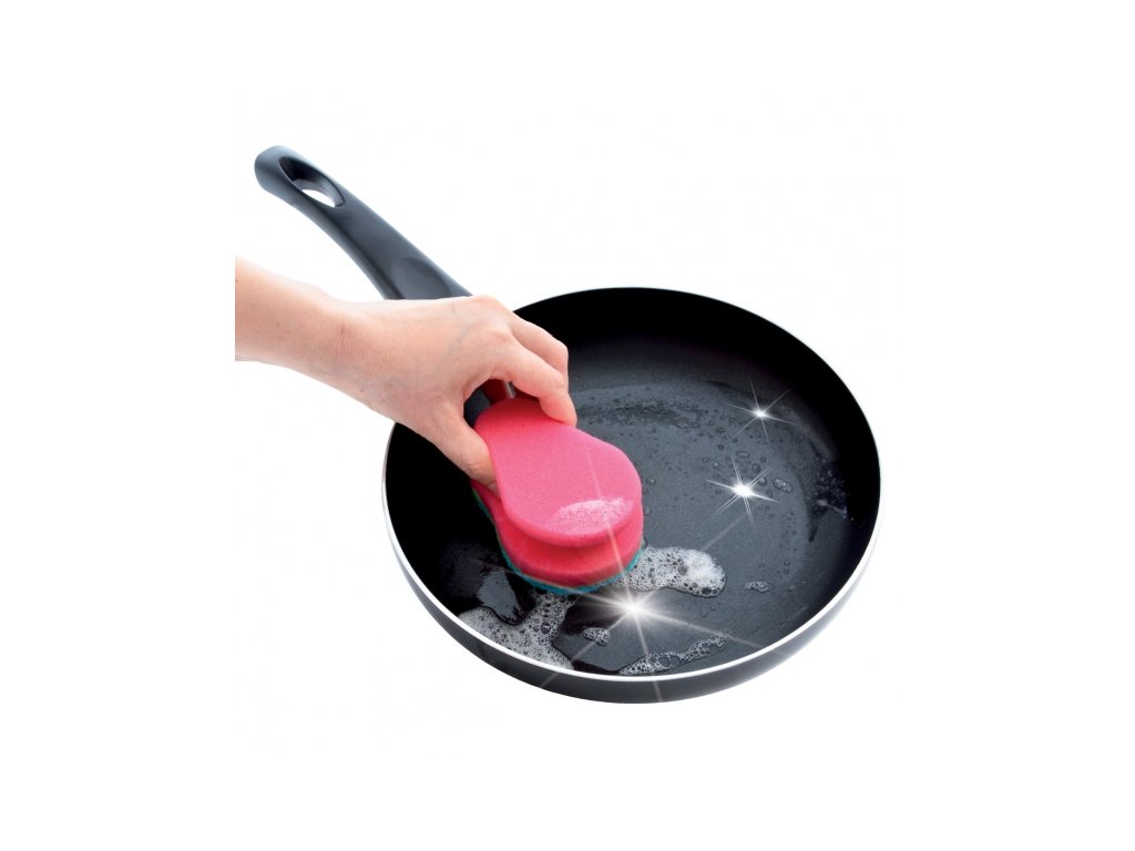 Houba na nádobí sada 4 ks - tvarovaní pro snadné uchycení. Důkladně, ale jemně odstraňuje hrubé nečistoty. Pro běžné, každodenní použití v domácnosti. Speciální tvar má mnohačetné využití. Profilování slouží jako ochrana nehtů. Atraktivní barevná řada. Vhodná na lesklé povrchy, teflon a sklokeramické desky.