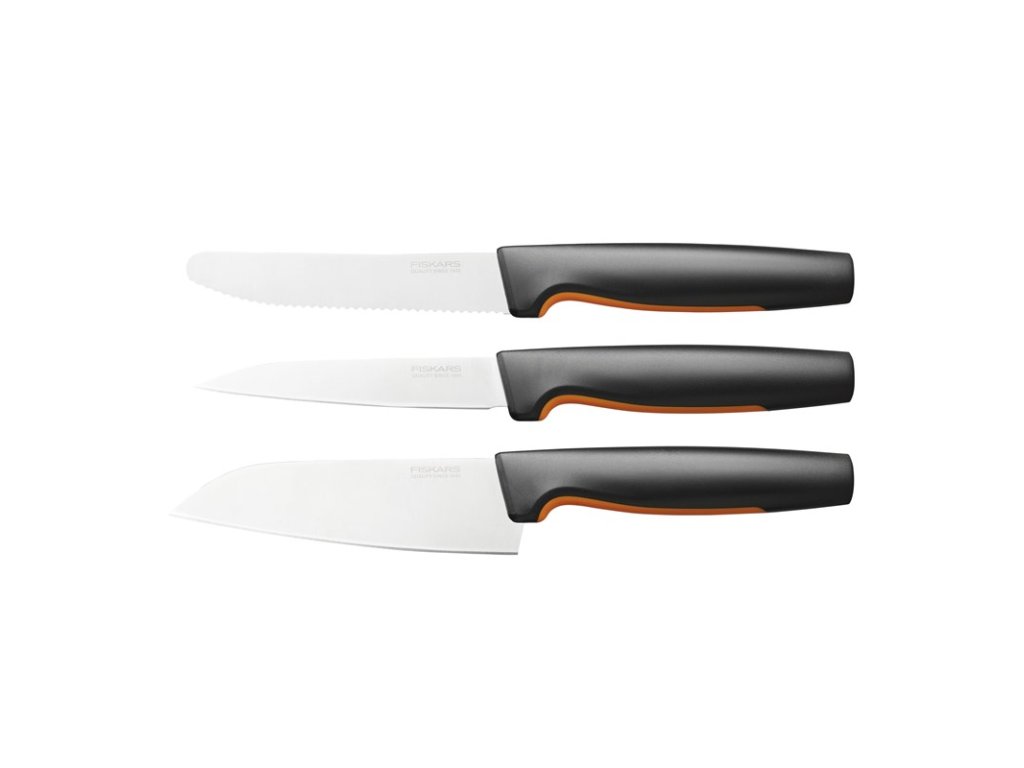 * Sada oblíbených nožů Fiskars Functional Form ™ obsahuje tři základní nože pro každodenní přípravu pokrmů: loupací, snídaňový, malý kuchařský nůž.
