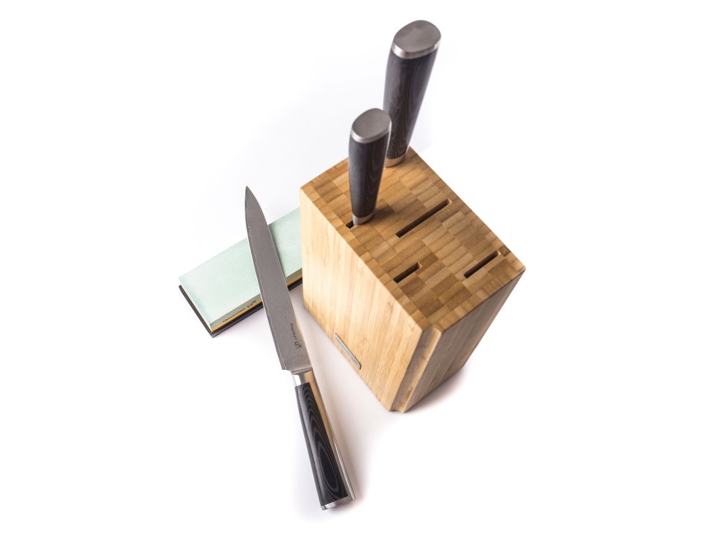 Sada nožů G21 Damascus Premium v bambusovém bloku, Box, 3 ks + brusný kámen