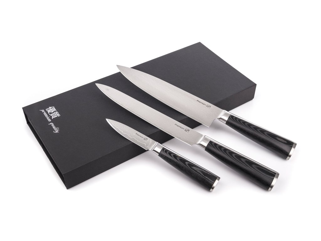 - Model: Sada nožů Damascus Premium 3 ks v bambusovém bloku