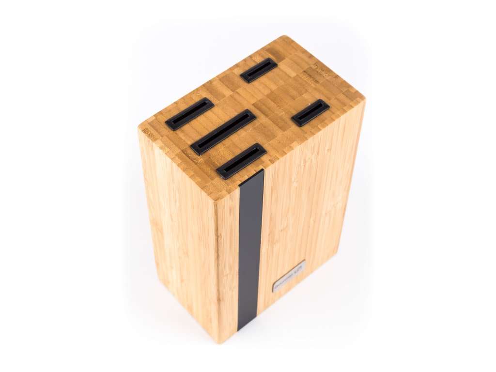 Správná péče o kuchyňské nože prodlouží jejich životnost a ostrost čepelí. Základem správné péče o nože je jejich vhodné ukládání – ideálně do stojanu na nože. Proto k sadě nožů G21 Gourmet Rustic dostanete i originální blok na nože z vysoce odolného bambusového dřeva s elegantní černou kovovou lištou na čelní straně stojanu na nože.