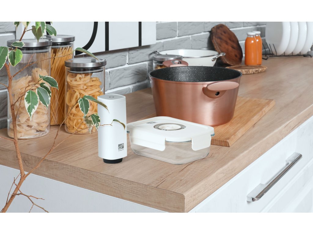 Víko je vyrobeno z BPA Free plastu, což zajišťuje bezpečnost při dlouhodobém používání. Kromě praktických přínosů pro domácnost je vakuování do vakuovacích dóz G21 výhodné i pro ty, kdo dbají na životní prostředí. Snižuje nutnost častého nákupu čerstvých surovin a pomáhá omezit plastové odpady, spojené s jednorázovými obaly.