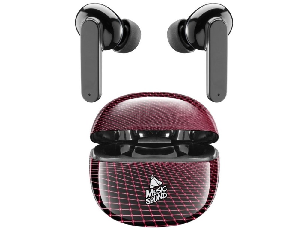 Kompaktní true wireless sluchátka Music Sound ve stylovém barevném provedení vám umožní naplno si užít bezdrátový poslech hudby. Po vyjmutí z nabíjecího pouzdra se každé ze sluchátek propojí s vaším telefonem samostatně pomocí technologie Bluetooth 5.1 a zbaví vás tak starostí s připojováním pomocí klasického kabelu. Sluchátka se mohou pochlubit ergonomickým tvarem, který dobře drží v uších a je pohodlný i při dlouhodobém poslechu. Díky minimálním rozměrům a hmotnosti snadno zapomenete, že máte sluchátka v uchu. Baterie sluchátek vydrží až 4,5 hodiny přehrávání na jedno nabití. Poté je můžete dobít vložením do nabíjecího pouzdra, které dokáže sluchátka 5x nabít a vy si tak můžete užívat až 22,5 hodiny poslechu. Samotný dobíjecí box se nabíjí pomocí USB-C kabelu. Díky vestavěnému mikrofonu poslouží sluchátka Music Sound pro vyřízení telefonního hovoru.
