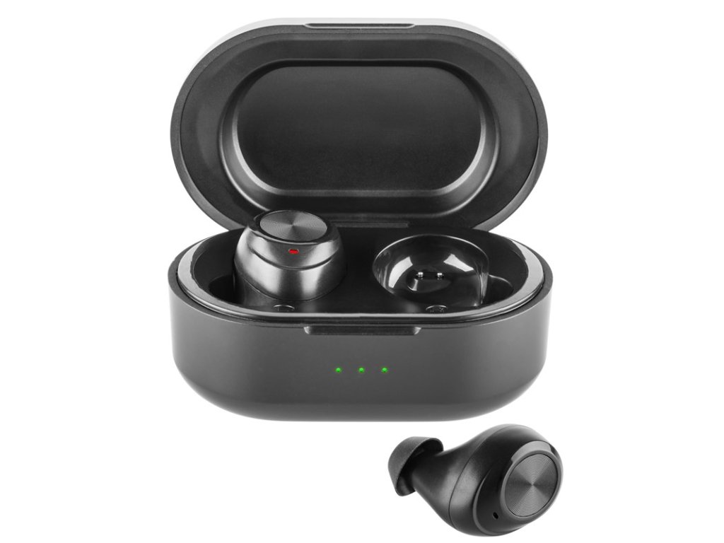 True Wireless Stereo sluchátka GoGEN, Bluetooth® v 5.0, výdrž baterie 8 + 25 hodin, IPX5, nabíjecí pouzdro