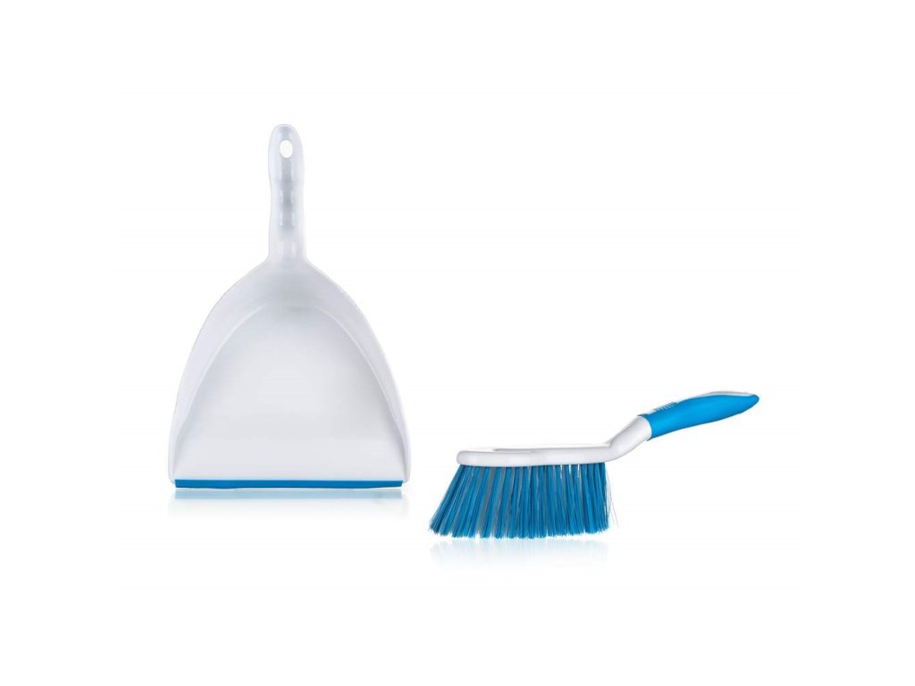 Souprava lopatka a smetáček EXCLUSIVE s gumou a měkčenou TPR rukojetí, barva modrobílá. Souprava je ideální k zametání podlah.- Barva: Modrá / bílá
