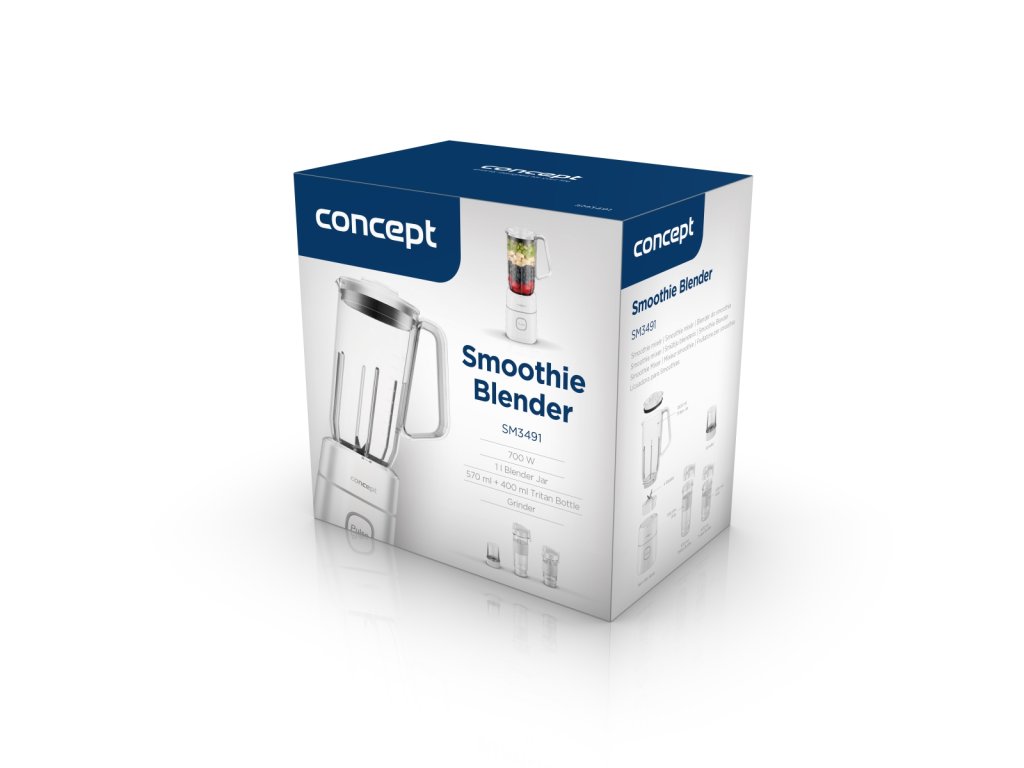 Smoothie maker SM3491 s příkonem 700 W zaručuje skvělý výkon pro rychlou přípravu smoothie, koktejlů a omáček. Součástí balení jsou tři mixovací nádoby z odolného tritanu - velká litrová nádoba s praktickým uchem a dvě menší lahve ideální na cesty. Přístroj je vybaven také mlýnkem na koření, což výrazně rozšiřuje jeho funkčnost. Nerezové sekací nože jsou vyjímatelné, snadno se čistí a zajišťují efektivní a rovnoměrné mixování. Tento mixér se stane nepostradatelným pomocníkem pro každého, kdo se chce stravovat zdravě a pohodlně.