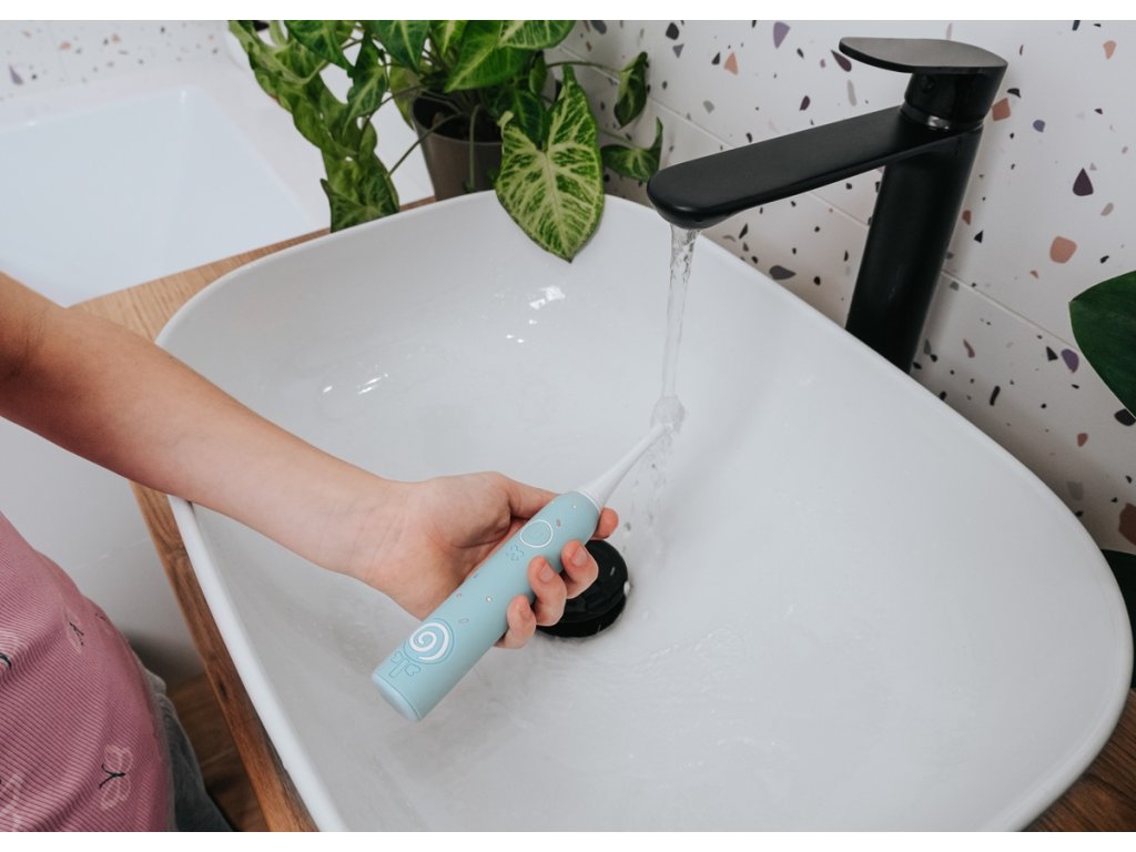 Sonický dětský zubní kartáček splňuje normu IPX7, takže je odolný vůči vlhkosti a lze ho bez obav opláchnout pod tekoucí vodou. Díky vodotěsnosti ho lze bezpečně používat i ve vaně nebo ve sprše. Tato vlastnost usnadňuje údržbu kartáčku a zajišťuje jeho dlouhou životnost.