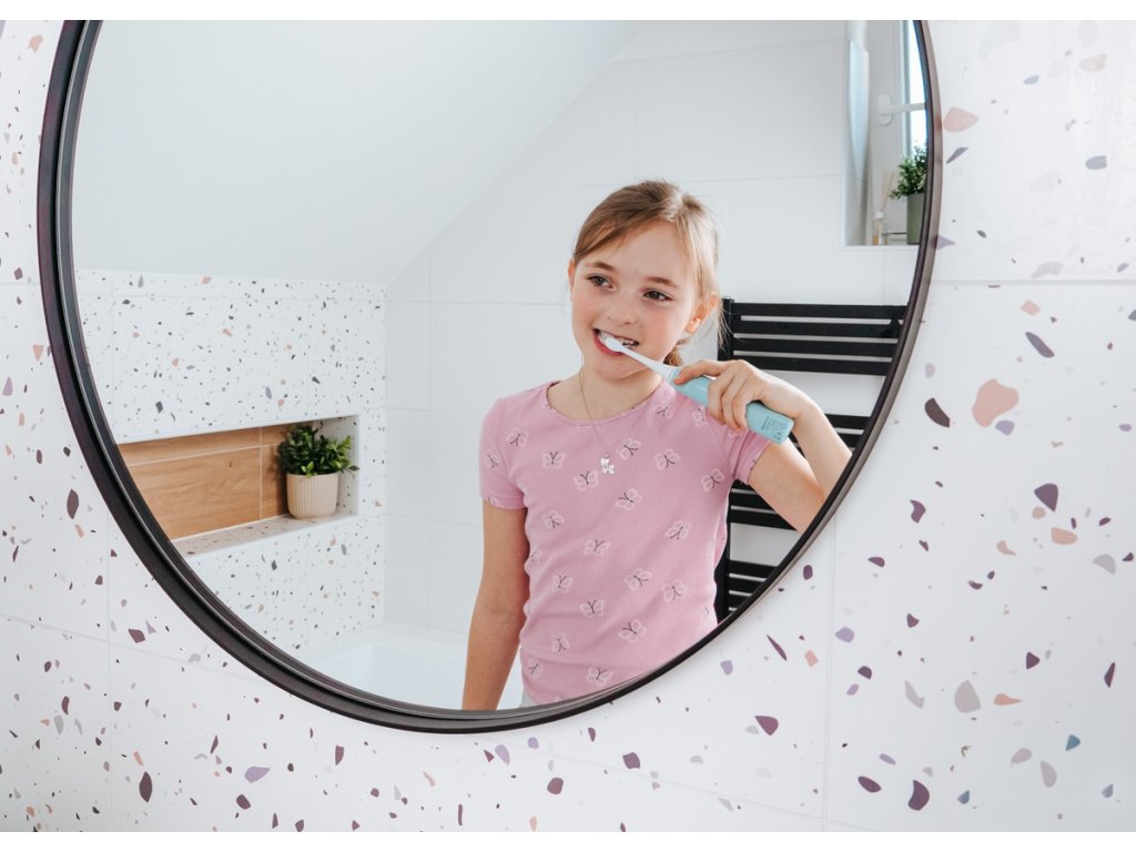 Sonická technologie je ideální volbou pro šetrnou péči o dětské zuby. Jemné vibrace s frekvencí 34 000 kmitů za minutu odstraňují plak a nečistoty, aniž by dráždily citlivé dásně nebo poškozovaly sklovinu. Sonické kmity napomáhají správnému čištění i v těžko dostupných místech a podporují zdravý vývoj dětského chrupu. Čištění je nejen důkladné, ale i příjemné, a pomáhá dětem vytvořit si zdravé návyky už od raného věku.