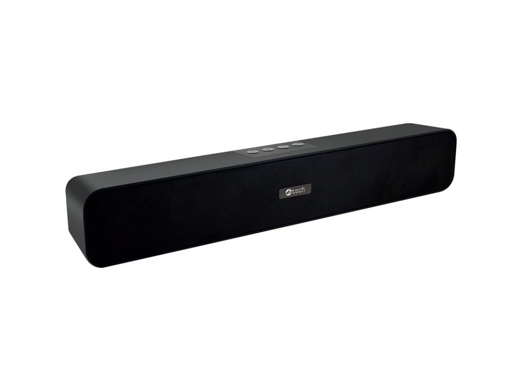 C-tech SPK-06 je stylový bezdrátový soundbar kompaktních rozměrů, který nabídne svému uživateli široké využití. Stereofonní zvuk s maximálním výkonem 10 W je podpořen konstrukcí měničů, kde kromě klasických 45mm měničů jsou i basové membrány. Soundbar tak i přes své malé rozměry nabízí velmi dynamický zvuk v celém rozsahu. Díky vestavěné baterii 1200mAh se neztratí ani na cestách a jeho dobití je velmi jednoduché pomocí standartního microUSB konektoru.