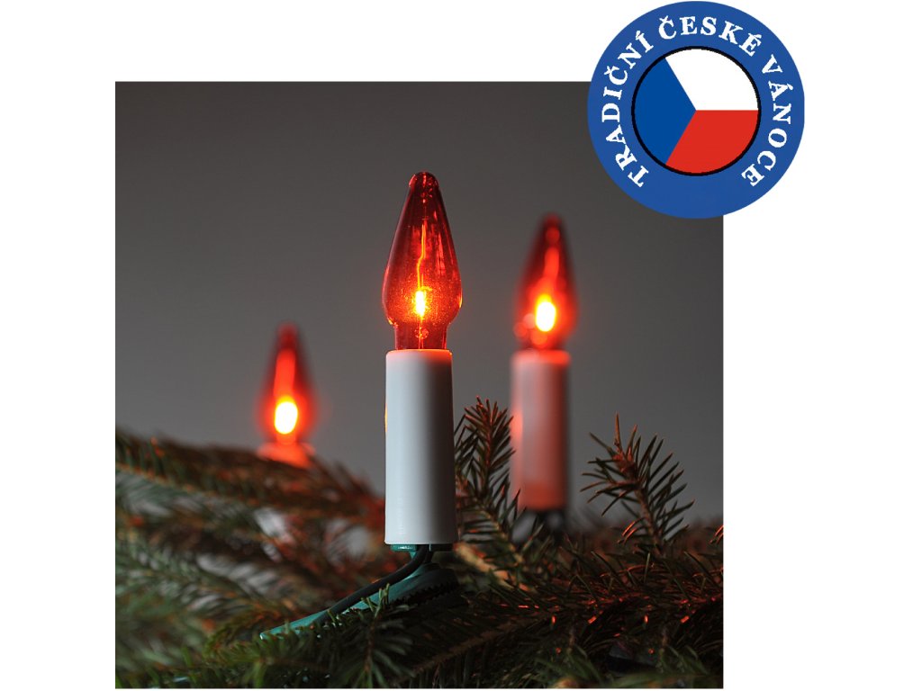 Tradiční české skleněné žárovky ruční výroby FELICIA červená, 16 žárovek x 14V/0,1A- délka řetězu 10,5 m