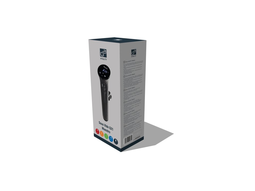 Ponorný pomalý vařič G21 Maestro je skutečným mistrem v sous-vide vaření ve vakuu. Je připraven pro každodenní bezpečné použití a vyladěný do nejmenších detailů. Elegantní tělo se skládá ze dvou částí – ponorná část s vnitřní varnou spirálou a vrchní část s elektronikou a kulatým dotykovým displejem. Pro bezpečné zavěšení sous-vide vařiče G21 Maestro na okraj varné nádoby jsme ponorný vařič vybavili háčkem s upínacím šroubem.