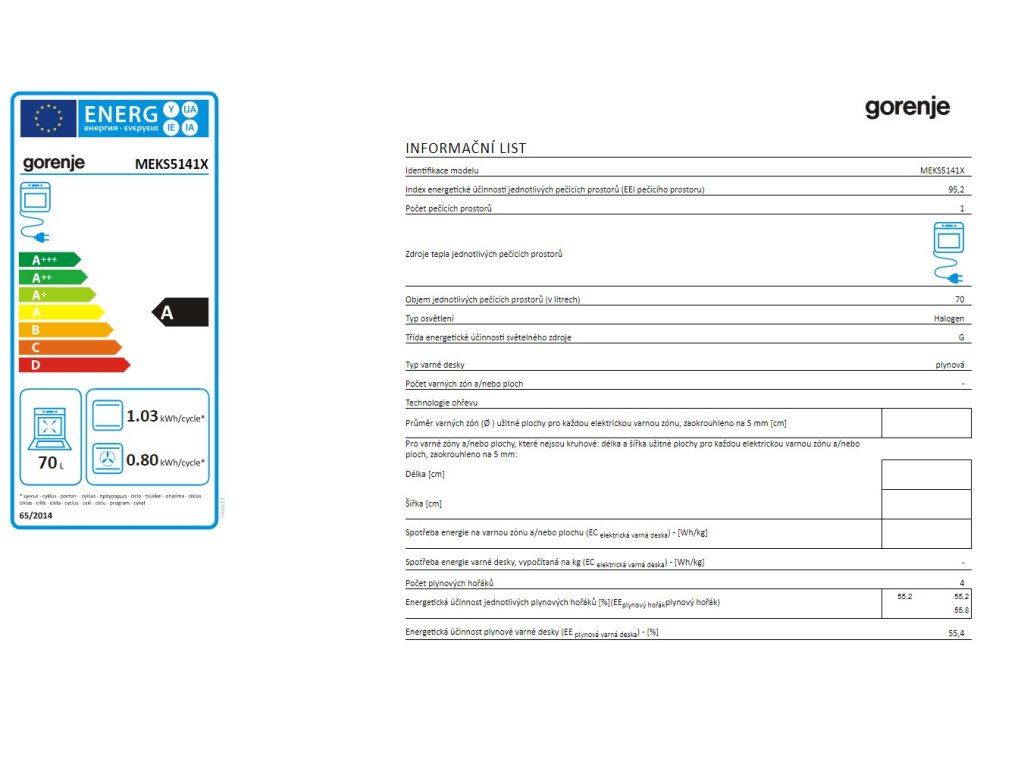 - Využitelný objem pečícího prostoru (2010/30/ES) 70 l