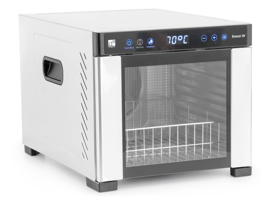 Sušička potravin G21 Breezer je vybavena prémiovou UV dezinfekční lampou, která zajišťuje rychlou a efektivní sterilizaci až 99 % bakterií během pouhých 10 minut. S průměrnou životností 5 000 hodin vám tato UV lampa poskytne dlouhodobou ochranu a bezpečí. Dezinfikovat můžete jakékoliv předměty, které se do sušičky vejdou – od kojeneckých lahví a dudlíků až po běžné domácí nebo osobní potřeby, jako jsou zubní kartáčky, nůžky, pinzety nebo dózy na potraviny. Součástí balení je také praktický nerezový košík.