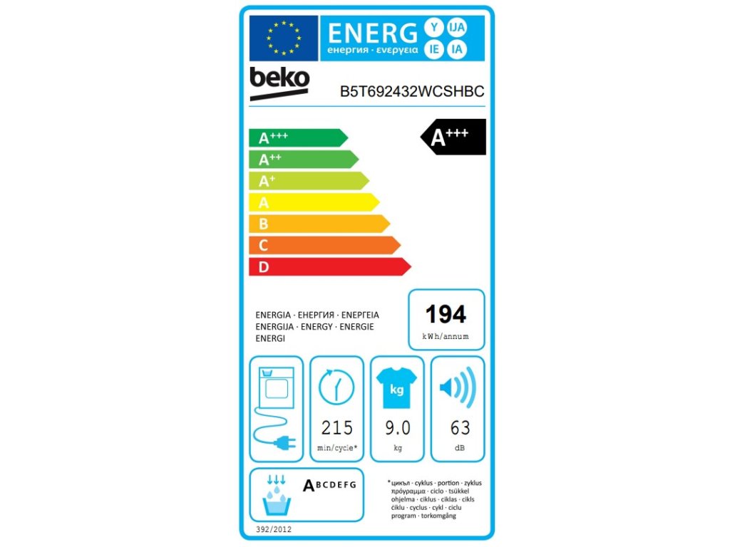 - Tepelné čerpadlo EcoGentle™ umožňuje sušení při nižší teplotě. To má vliv nejen na kvalitu oblečení, protože neztrácí svůj tvar a barvu, ale také na nižší spotřebu energie.