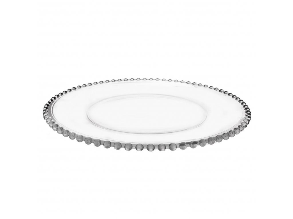 Servírovací talíř s ozdobným okrajem. Krásně na něm naservírujete dort, koláč, zákusky, jednohubky, chlebíčky... Materiál: sklo. Vhodný do myčky na nádobí. Rozměry: pr. 34 cm, v. 2 cm.Doplňkové parametry