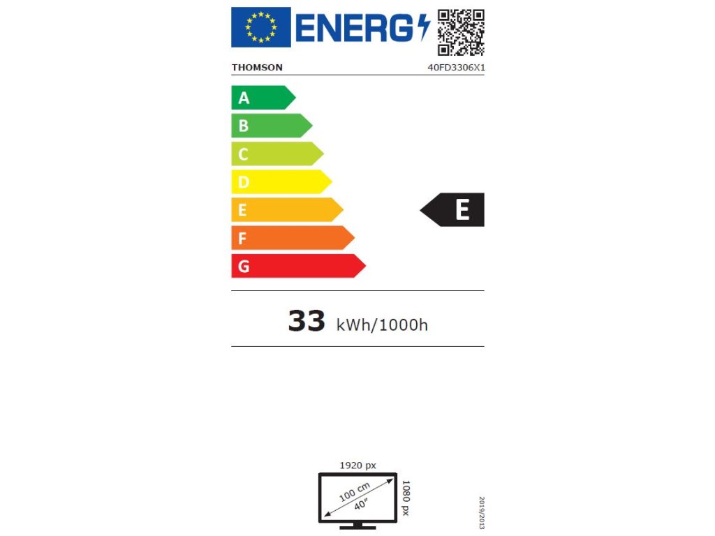 TV s rozlišením Full HD (1920×1080), úhlopříčka 100 cm, DVB-C/S2/T/T2 (H.265), 200 PPI, 2x HDMI, 1x USB, OS vlastní, energetická třída E
