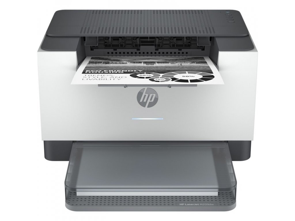 Tiskárna HP LaserJet Pro M209dw; Černá tonerová kazeta HP LaserJet (cca 700 stran); Protiprachový kryt; Referenční příručka, instalační leták, záruční příručka a list v některých zemích; Napájecí kabel