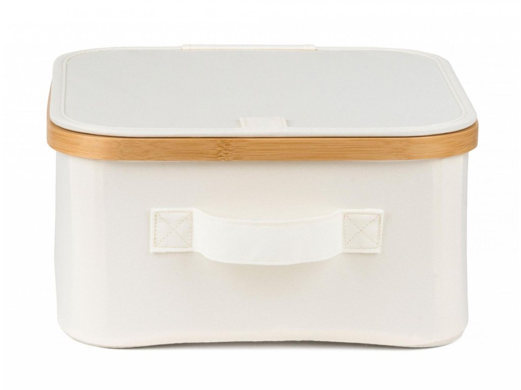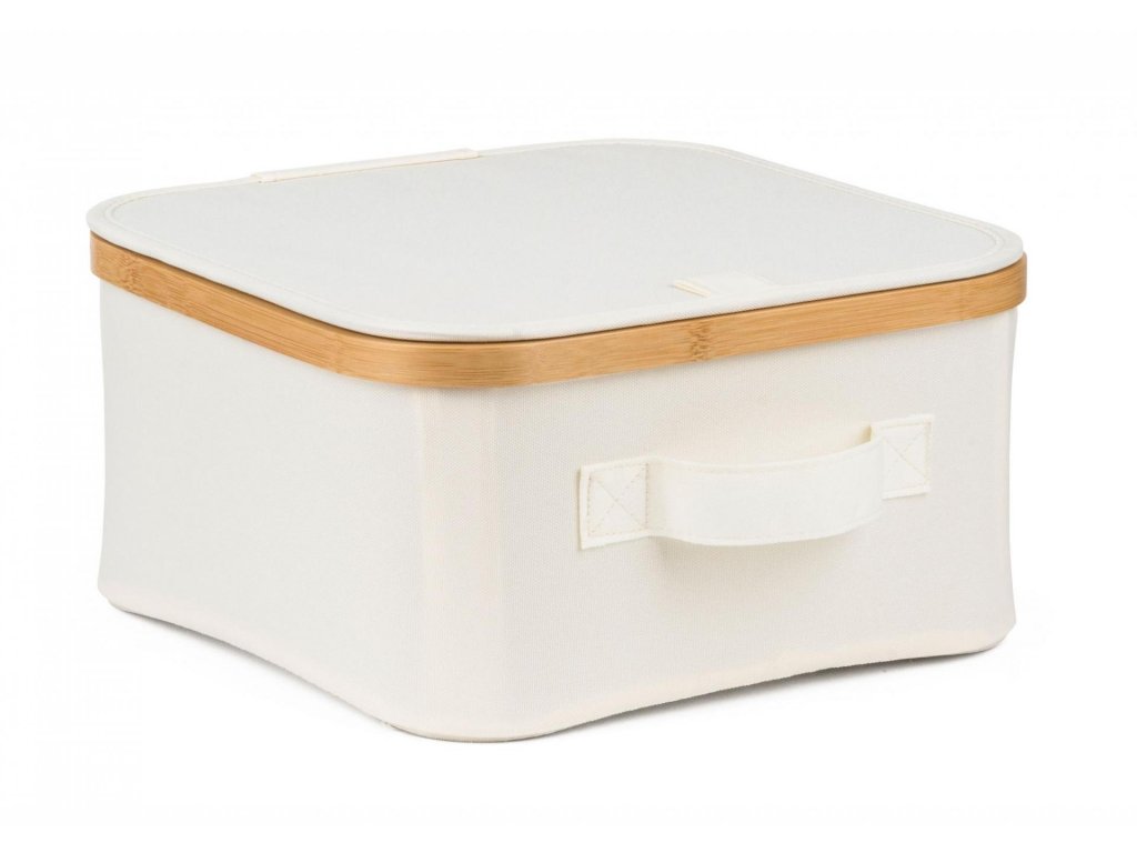 Úložný box G21 30 x 30 x 15 cm, bambusový s víkem, béžový
