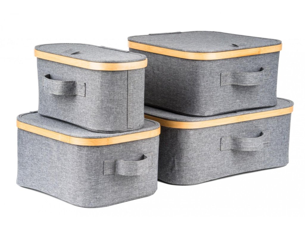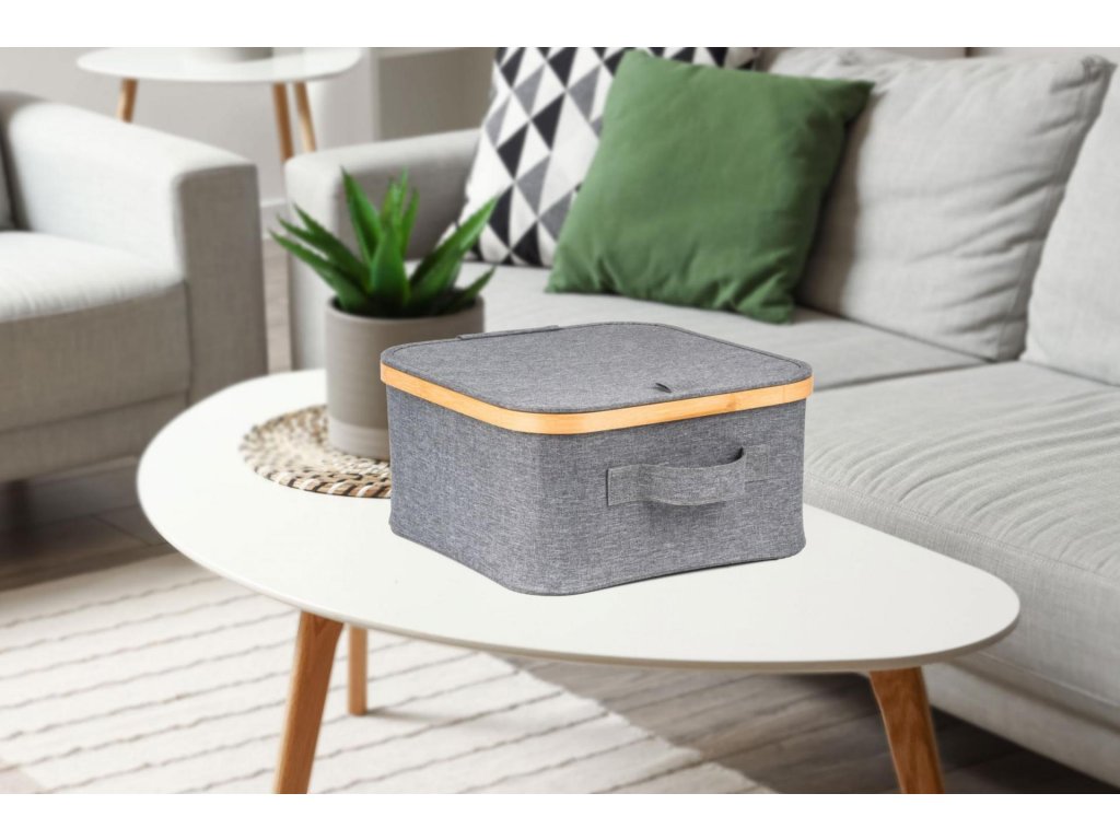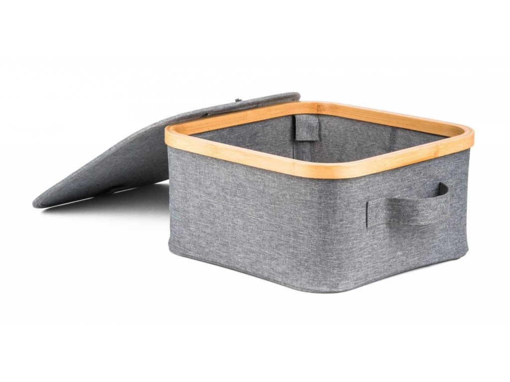 Úložný box G21 30 x 30 x 15 cm, bambusový s víkem, šedý